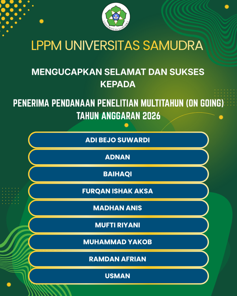 Selamat dan Sukses kepada Penerima Pendanaan Penelitian MultiTahun (On Going) Tahun Anggaran 2026By Humas LPPM / March 9, 2026