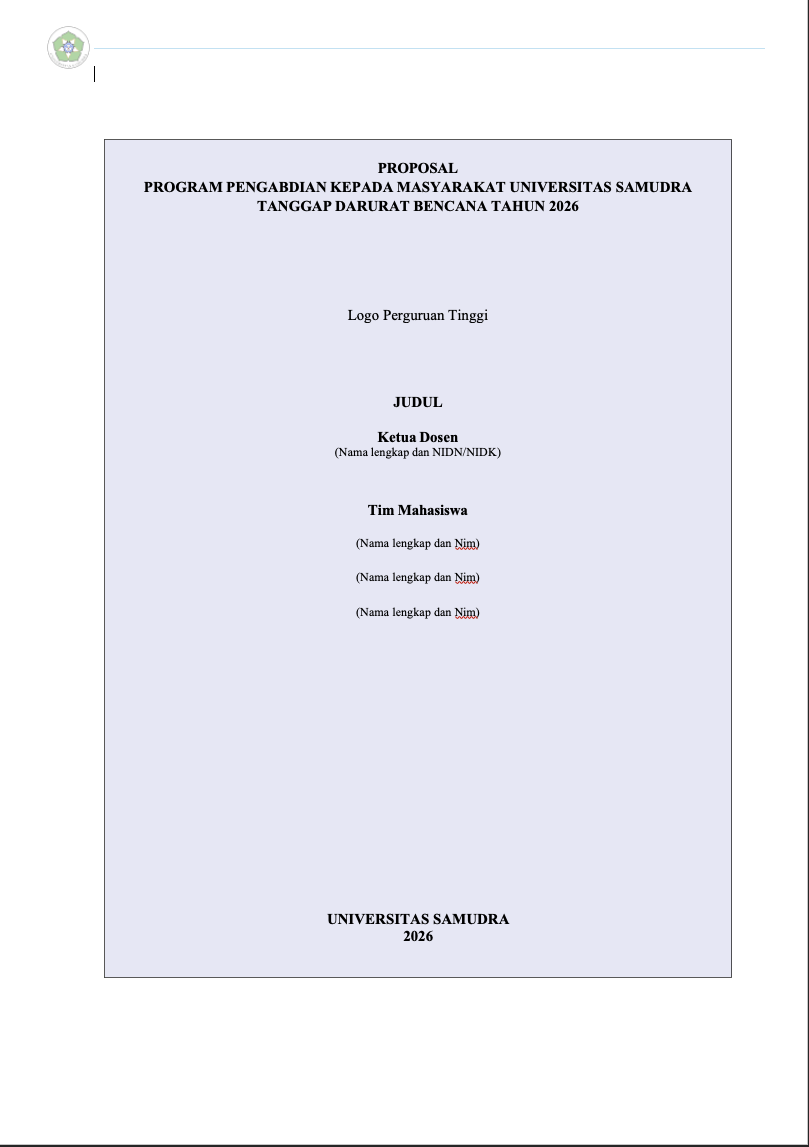 Template Program Pengabdian Kepada Masyarakat Universitas Samudra Tanggap Bencana Tahun 2026By Humas LPPM / December 23, 2025 Unduh Template